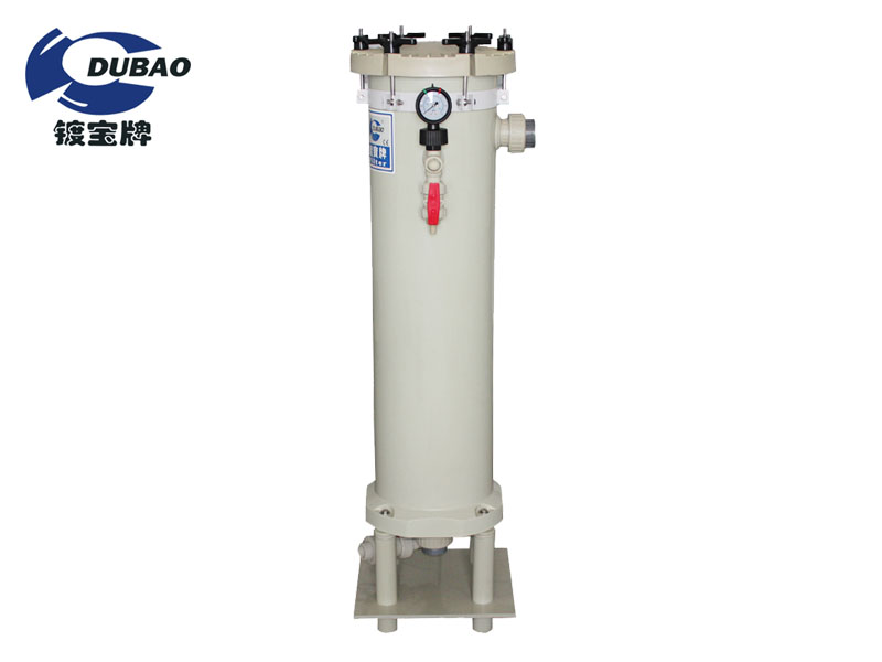 概述:镀宝PP塑料过滤器 : 产品特点: 1、特别适用于电镀药夜、化学药液、纯水循环过滤等用途。 2、采用日本原装进口无轴封泵浦绝无泄漏之虑。 3. 滤心式设计高精密过滤过滤面积广、