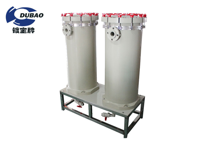 概述:芯式过滤器产品特点:1.过滤机主体及各种重要零件,均采用PP塑钢材质一体成型开模生产,达成焊接点最少、防漏液性最佳。2.滤材选择滤芯压盘式、滤芯螺帽式。3.另有钛金属束环组可
